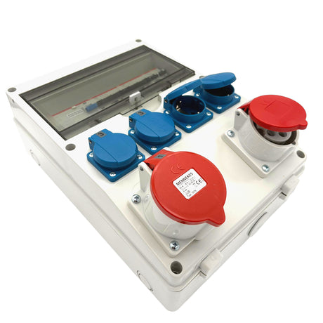 SANOS Wandverteiler ABB/Mennekes - 1x CEE 32A 1x CEE 16A und 4x Schukodosen mit FI | SAN014