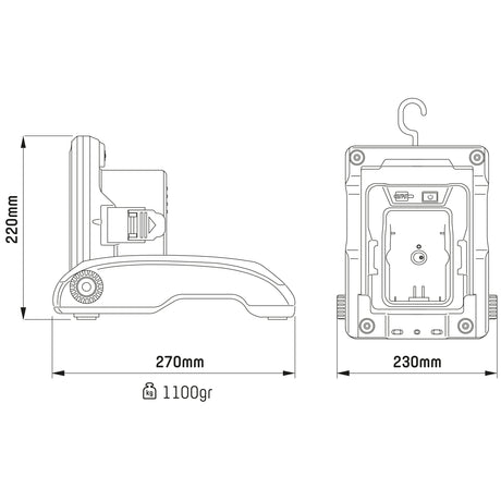 LED-Akku-Arbeitsleuchte, 20 W, IP54, inkl. 18 V Akku-Adapter, USB-Ausgang