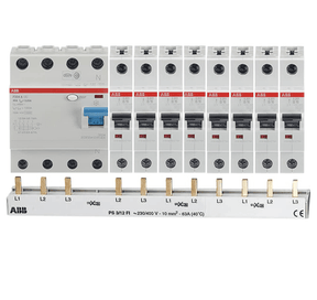 ABB Set 1x FI-Schutzschalter F204A-40/0,03 + 8x Sicherungsautomat S201-C16 + 1x PS3/12FI Sammelschiene - C-Charakteristik
