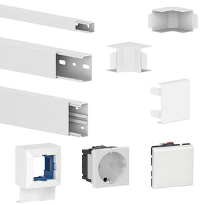 Mit passendem Zubehör wie Innenecken, Außenecken und Endstücken lässt sich der GGK Leitungsführungskanal LFG flexibel an jede Raumsituation anpassen. Für erweiterte Funktionen stehen dir zusätzlich ein Trennsteg zur Leitungsseparierung, Modulrahmen, eine Modulbox, ein Wechselschalter mit Wippe, eine 1-Fach Steckdose sowie eine Antennensteckdose zur Verfügung. So kannst du die Installation ganz nach deinen Anforderungen gestalten – funktional, sicher und optisch ansprechend.