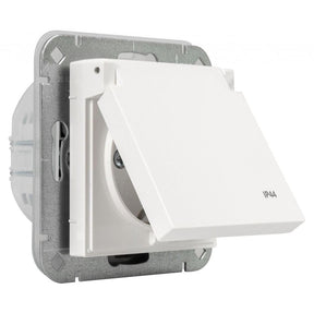 Unterputz-Steckdose mit Klappdeckel IP44 | polarweiß seidenglanz | für Außen- und Nassbereiche